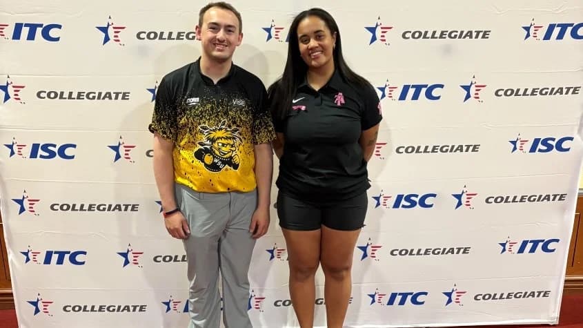 Spencer Robarge, left, and Maya Avilez, right, are in the quarterfinals of the 2025 Intercollegiate Singles Championships. Photo by USBC.