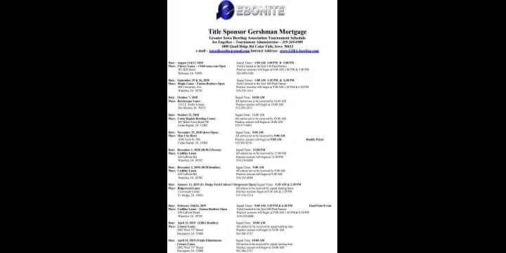 The Greater Iowa Bowling Association has released its 2018-19 schedule and announced that it has signed Gershman Mortgage as title sponsor of the tour.