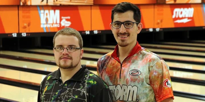 Aaron Ruiz, left, and Greg Young Jr., right, totaled 1,447 to take the doubles lead Thursday at the 2021 USBC Open Championships. Photo by USBC.